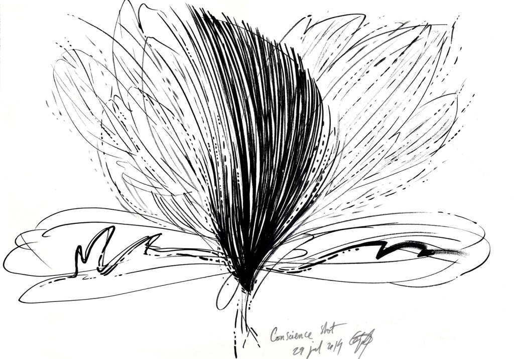 First of all, I drew them because I was obsessed by the time, by the NOW moment and how it is passing, and passing… years after years, while I try and struggle to do something unique and solid, to survive it. All my life, the time was my first obsession, the NOW point, to survive it, to catch somehow the present moment and to keep it motionless, to keep alive the little moments of joy that flow among us, and to keep far away of the present moment the pain, the suffering and so on.