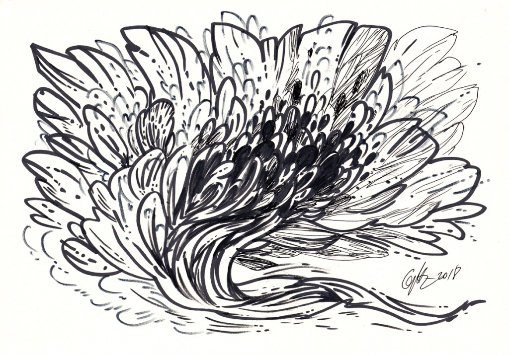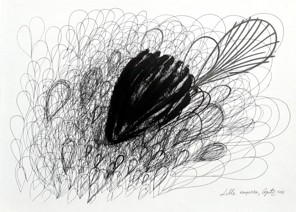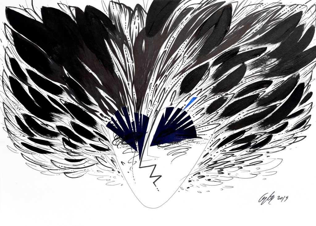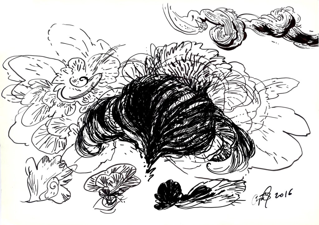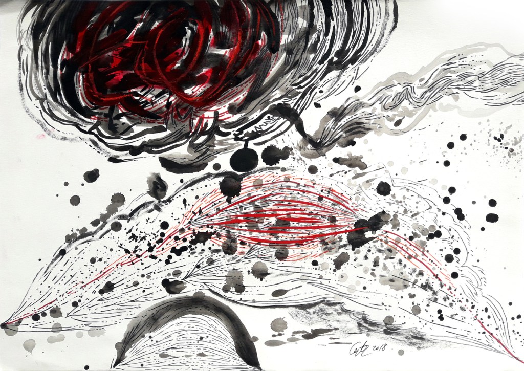 Drawing is my favourite, my easiest and hardest way at the same time, to express my inner world representations. It’s something strange what I try to do, a process that I can’t fully understand, but I constantly urge myself to repeat it, over and over again, in order to find something I still don’t know what. That’s why, I try different techniques and materials. I use charcoals, markers, pens, pencils, acrylics, ballpoints, inks, etc. Also, I like monotyping, doodling, scratching, stamping, splashing, or painting with different materials on the surface, in order to confer an organic and peculiar vibe to the work, to surpass the physical limitations. The drawings are posted in chronologically order, so at the bottom of the page there are the oldest works. The top ones are mostly, the newest. I’ll try to describe them, as much as I can, especially since most of the time, there is not a conscious process, but a random one.