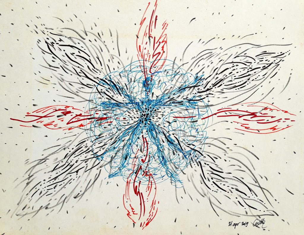 Down here, I posted some stuff I made, perhaps in the last five years, during the pandemic, on different supports: paper, canvas, cardboard. The size is variable, from A4 to 50×70 cm, using different materials and techniques, especially drawing witn markers, pencils, pastels or charcoal. I think the titles I gave to the works are not the best choice, but sometimes they came in my mind after I finish the work. However, the main subject, is, as usual, an introspective one, a dive in my subconscious, to find shelter, answers, and peace of mind.