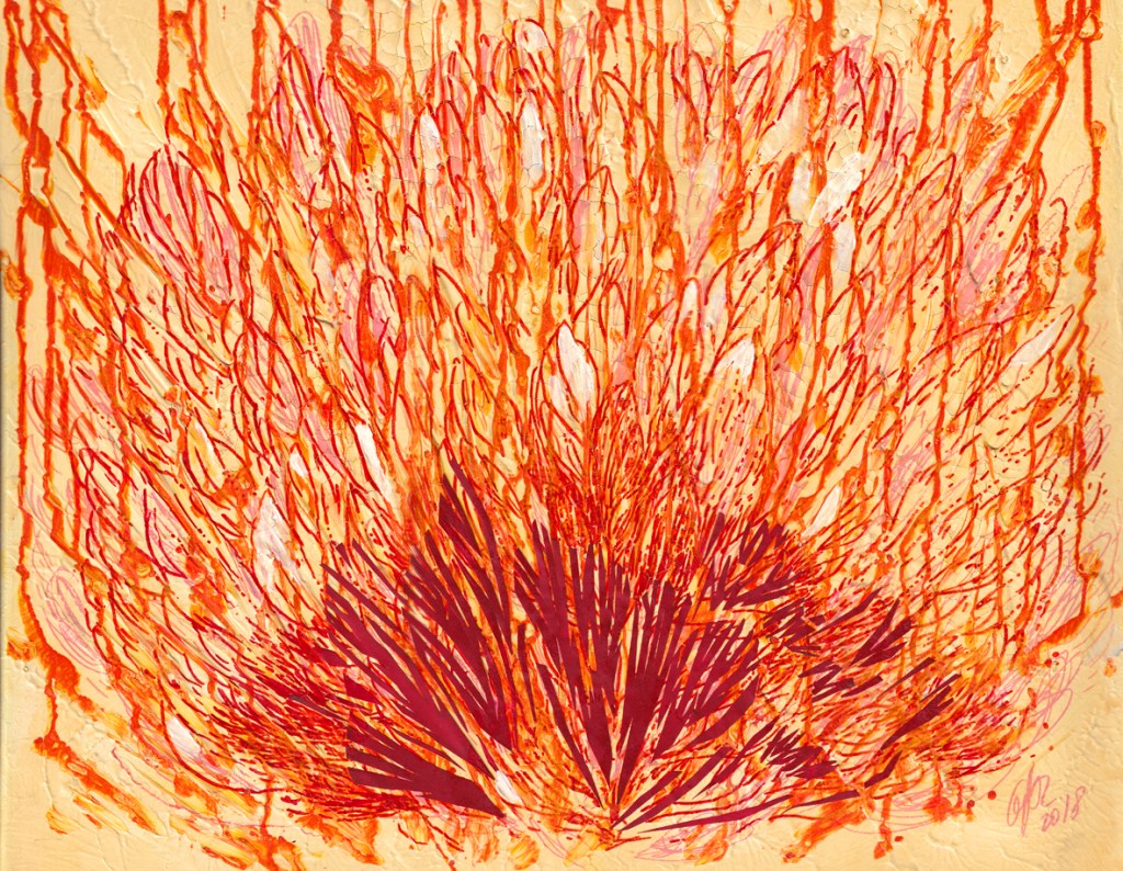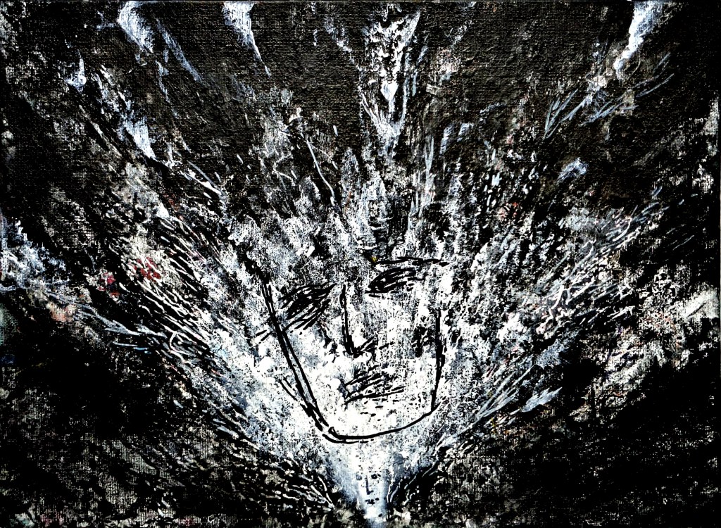Down here there is a small collection of little works on canvas, wood panels or cardboard (30×30 cm, A4). The same subject, the diving in subconscious world, enlighting through the dark around, expanding conscience, trespassing in a higher living state.